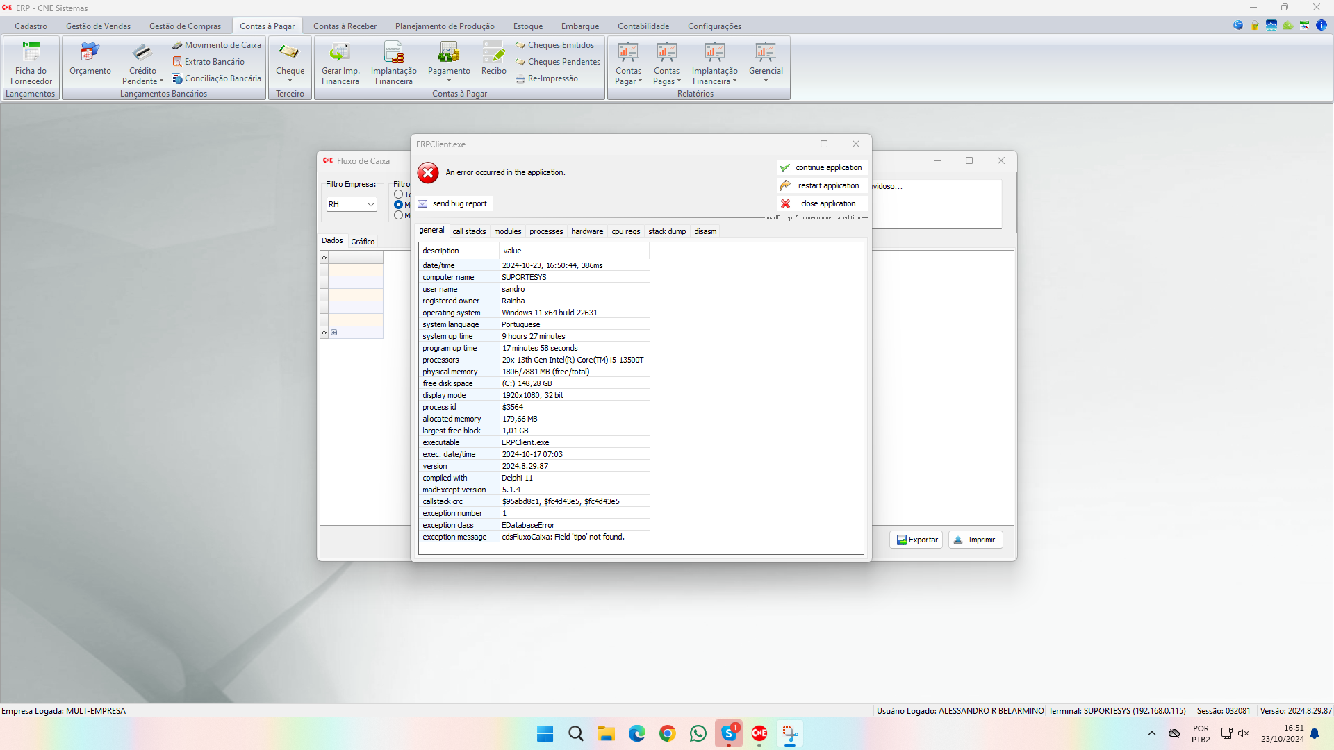 Wednesday, November 6, 2024 3:52 PM 94464 12fd86b0-27fd-4ace-9142-202ae2fed5e2_Erro Relatorio Contas receber Cartorio 2.png