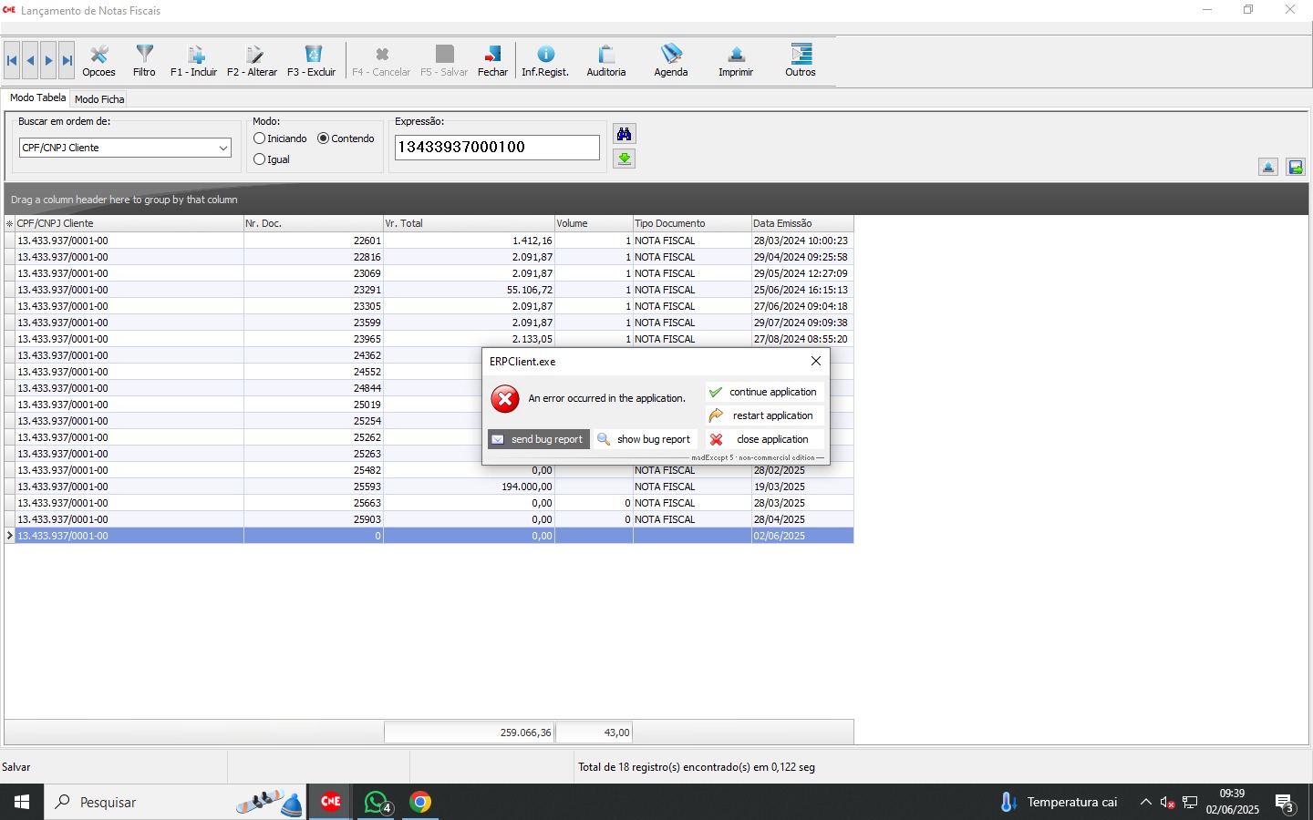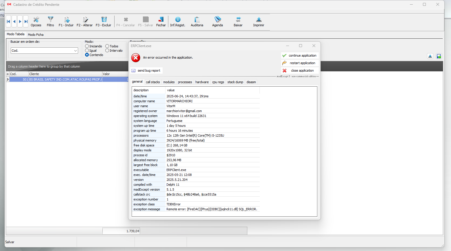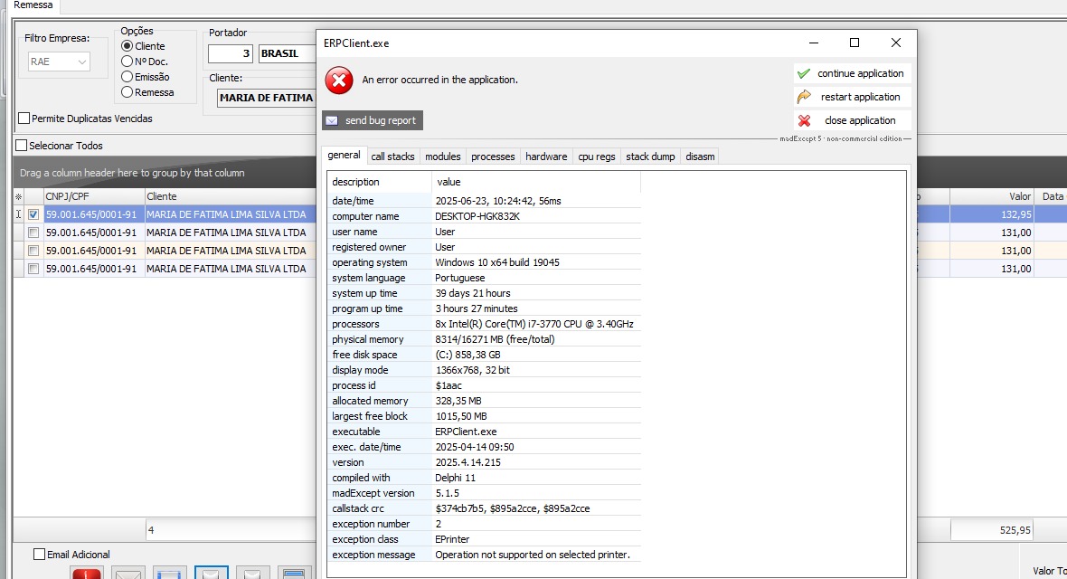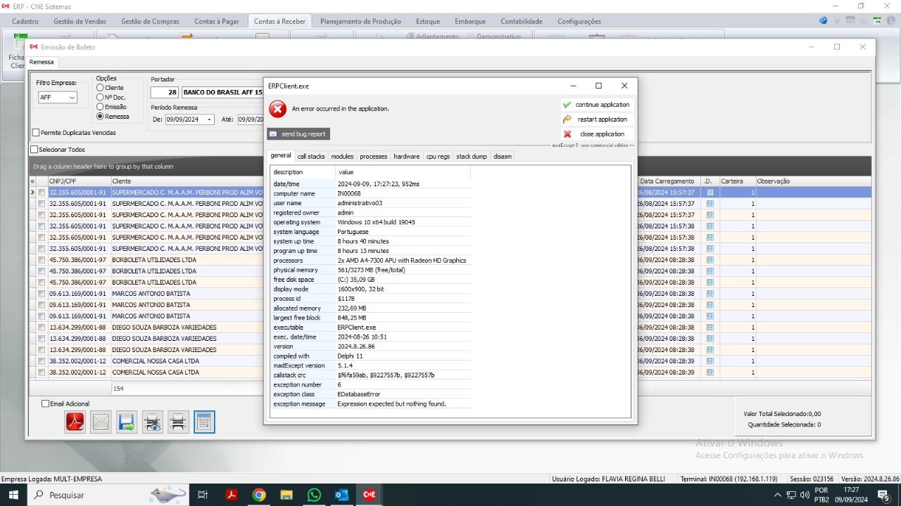 Wednesday, November 6, 2024 3:52 PM 45819 3153b105-302c-4011-b96a-2ac8559c68f6_Erro Relatorio Contas receber Cartorio.png